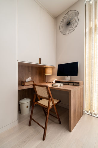 Lot's of challenges and limitations had been overcome and large amounts of bespoke joinery designed to give this small apartment a minimalist look with some wabi sabi influences.